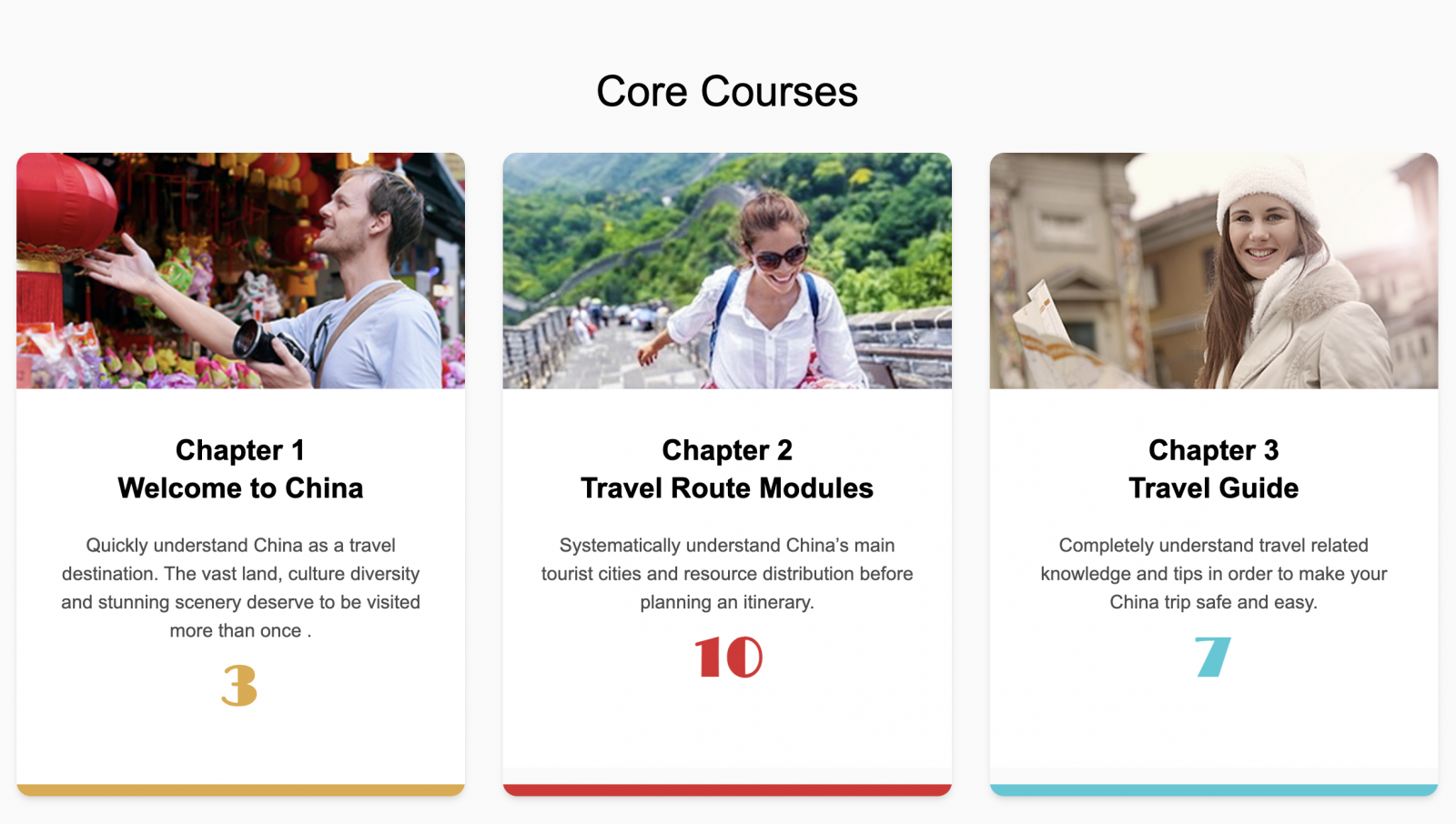 The “China Tourism Course” multilingual learning platform was launched at the end of 2021. It currently offers six language versions: Chinese, English, French, German, Spanish, and Italian, with a total of 70 courses.
