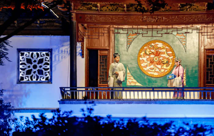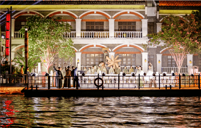 开幕式后,实景表演《运河四季》璀璨开演。演出在无锡市清名桥区域搭建由水岸、桥头、游船组成的立体舞台,以歌、舞、诗、乐、曲艺、戏曲等艺术形式,通过无人机、5G技术与舞台LED大屏实时联动,展示大运河全流域的人文、美景和风物之美,为现场观众带来震撼的视觉体验。