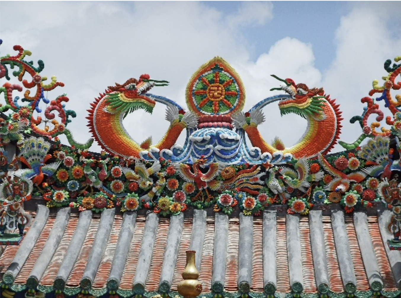 Where most see shattered ceramics as ruin, the Daliao masters see tesserae awaiting rebirth. This architectural mosaic art, cultivated for over a century by the celebrated Xu family transforms fragments of colored porcelain into vibrant narratives that shimmer across temple roofs and ancestral halls. Working in the visual vocabulary of primary colors set in bold, clashing harmony, artisans cut and fit ceramic shards with the precision of jewelers, creating relief compositions that seem to pulse with their own chromatic heartbeat. Dragons emerge from azure fragments; peonies bloom from crimson shards. The technique brings Chaoshan and Southern Fujian sensibilities into a distinctive visual language where brokenness becomes ornament, and the patina of history is reassembled into dazzling stories of moral instruction and popular legend. These are not mere decorations but frozen fireworks—permanent celebrations of color grafted onto the skin of architecture.
