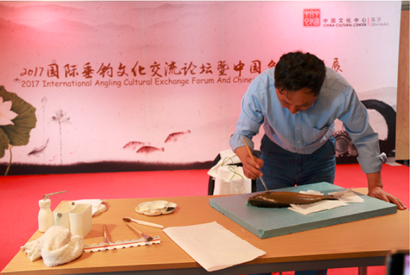 5月14日下午,为期一个半月的中国鱼拓艺术展在海牙中国文化中心拉开帷幕,2017国际垂钓文化交流论坛同时举行。
