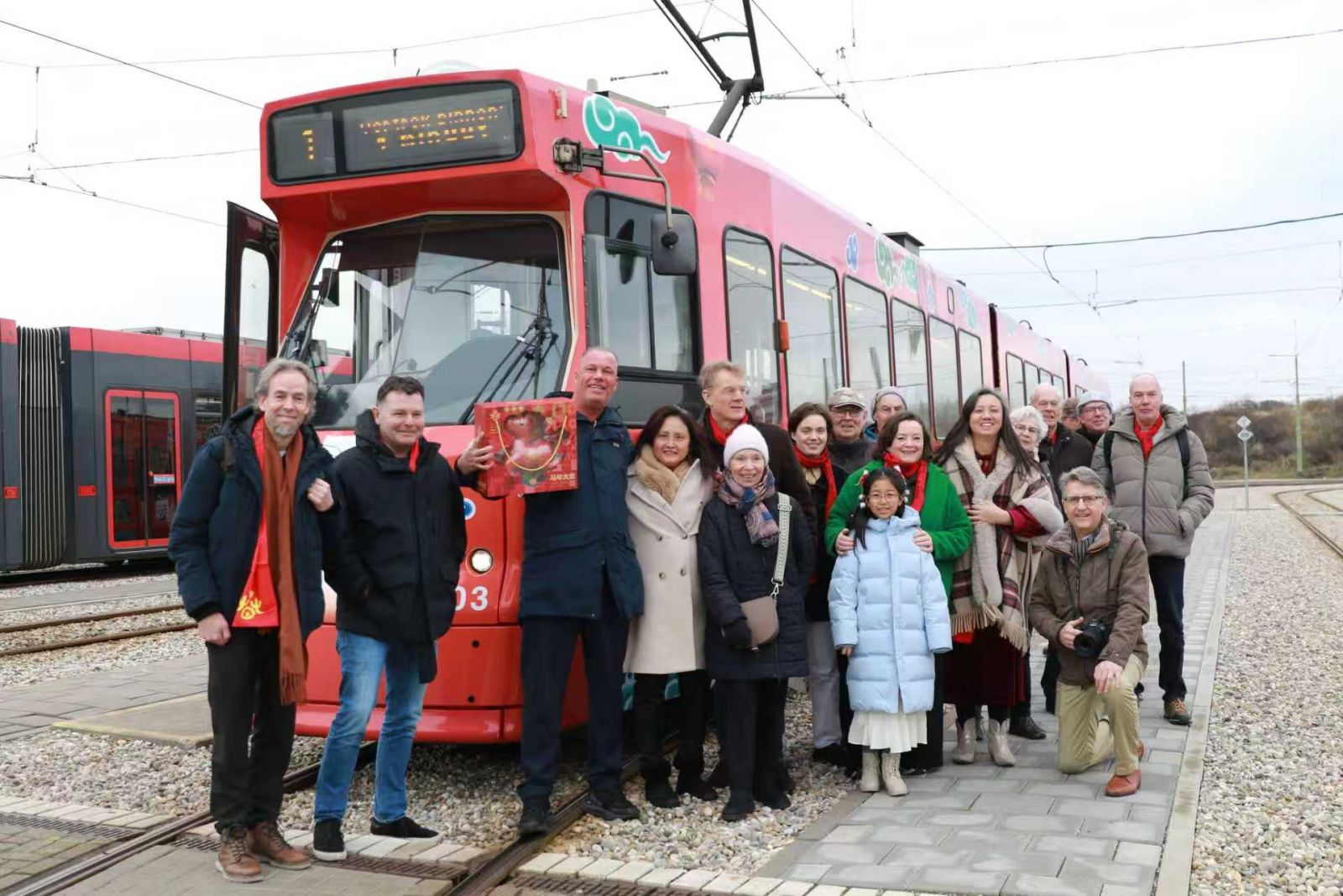 Om de deelnemers volledig in de feeststemming te brengen hield het China Cultureel Centrum een korte ceremonie. Directeur Wang Zheng overhandigde iedere deelnemer een rode nieuwjaarssjaal als symbool van geluk en warmte. Hij sprak zijn nieuwjaarswensen uit en gaf een korte introductie van het culturele programma van 2026, waarbij hij Nederlandse vrienden uitnodigde om China persoonlijk te ervaren, bijvoorbeeld door met de Chinese hogesnelheidstrein te reizen en een echt, veelzijdig en zich ontwikkelend China te ontdekken. Het Centrum overhandigde ook een mascotte van het Jaar van het Paard aan de tramchauffeur Dennis. Na uitleg over de Chinese nieuwjaarstradities zei hij enthousiast: “Dit is mijn eerste Chinese Nieuwjaar. Ik wens alle Chinese vrienden een gelukkig nieuwjaar!”